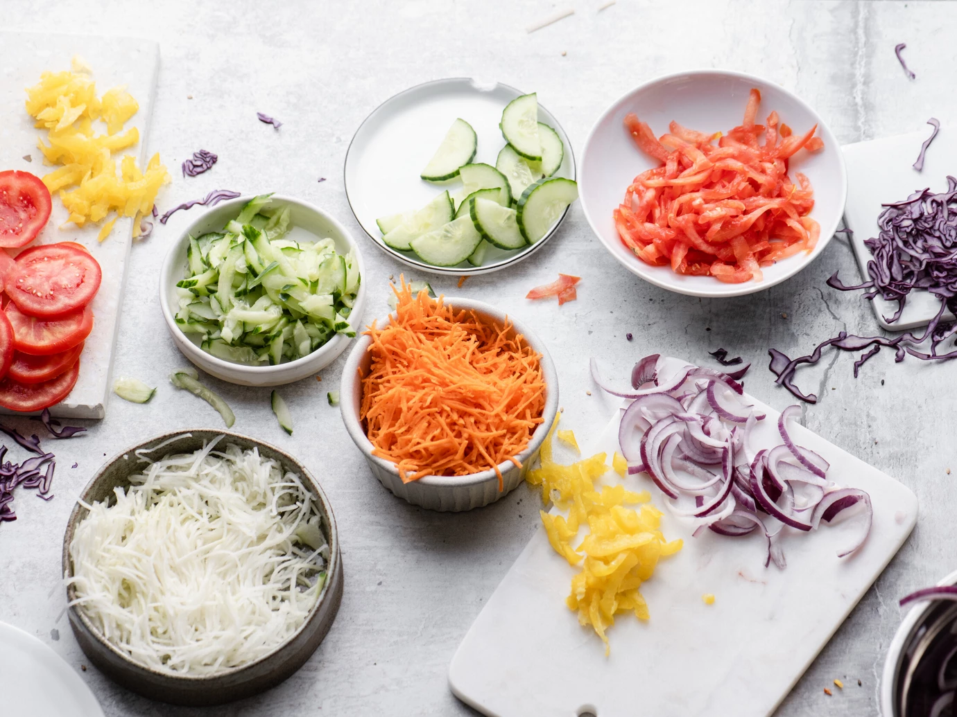 Zutaten ganz nach Belieben schneiden, reiben und spiralisieren.