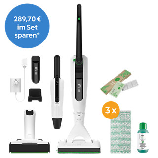 Das kabellose Power-Duo für die trockene und feuchte Bodenreinigung Im Set enthalten ist der noch effektivere, unabhängigere Kobold VK7 Akku-Staubsauger mit unfassbarer Akkulaufzeit und folgenden weiteren Aufsätzen: der EB7 Elektrobürste, die sich dank der automatischen Bodenerkennung ganz genau deinen Bodenverhältnissen anpasst, und dem SP7 Saugwischer der in einem Schritt saugt und wischt. Mit dem Zubehör für den VK7 ist das Reinigen und Saugwischen auf empfindlichen, schwer zu reinigenden, dunklen Böden wie Granit möglich! Produkte sowie Preisangabe nur gültig bei Bestellung innerhalb Österreichs. Gültig solange der Vorrat reicht. Nicht kombinierbar mit anderen Rabatten und Aktionen, Druck- und Satzfehler vorbehalten. Änderungen vorbehalten. Angaben ohne Gewähr.