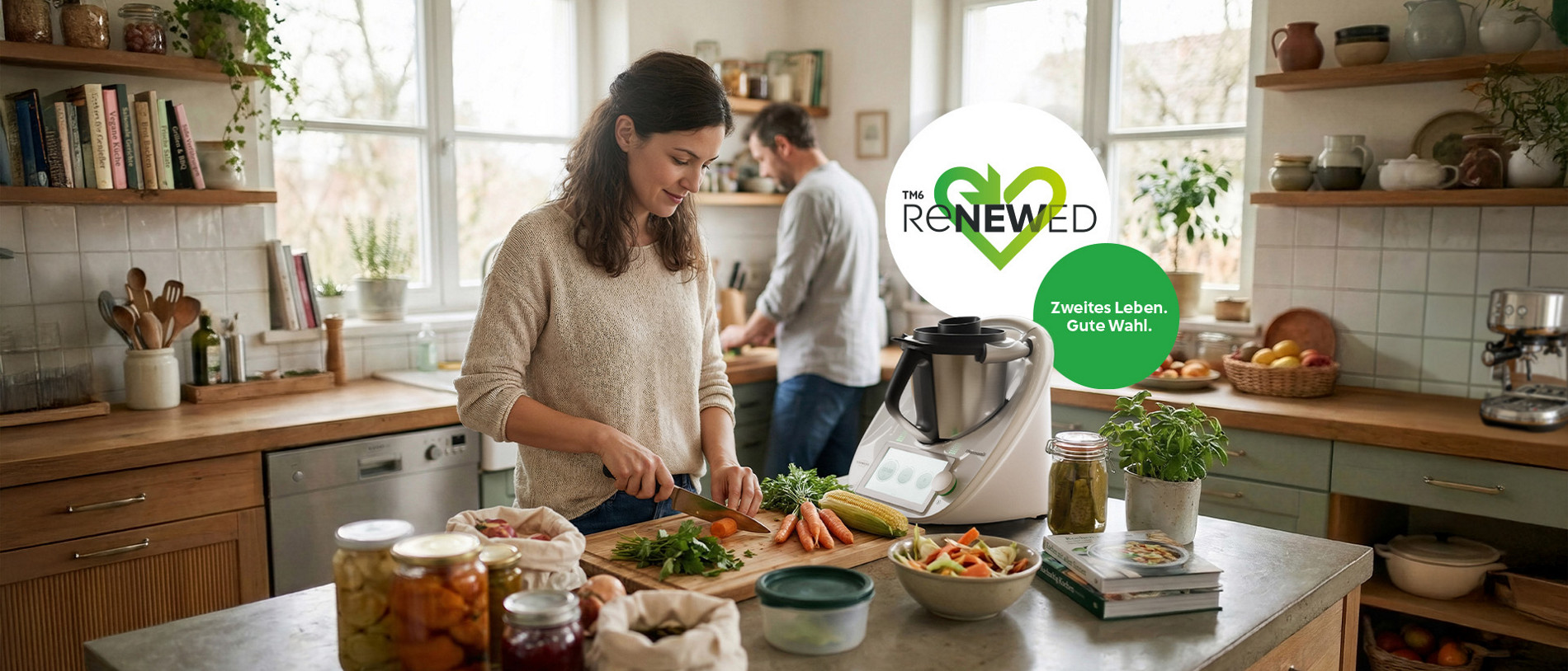 Mit dem wiederaufbereiteten Thermomix® TM6 ReNewed schenkst du dem Vorwerk Original ein zweites Leben, schonst wertvolle Ressourcen und leistest einen bewussten Beitrag für unsere Umwelt.
