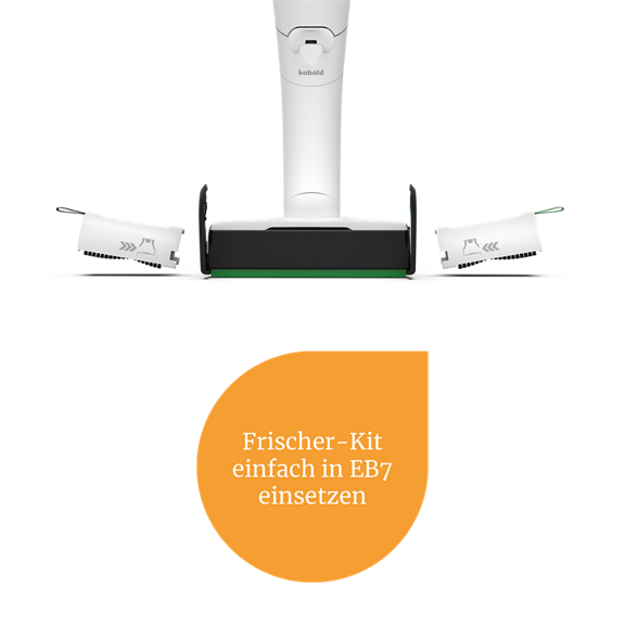 Kompatibilität: Nutzbar mit Kobold EB7 Elektrobürste (Version ab Mai 2023). Auf dem Typenschild der EB7 Elektrobürste befindet sich ein Hinweis, wenn das FK7 Frischer-Kit kompatibel ist:
