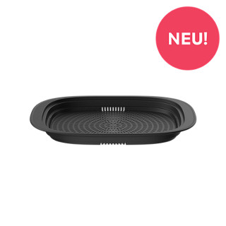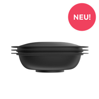 Bestehend aus Varoma®-Deckel, -Behälter und -Einlegeboden. Mit dem Varoma® werden Gemüse, Fisch, Obst, Kuchen und Brot auf schonende und einfache Weise dampfgegart.