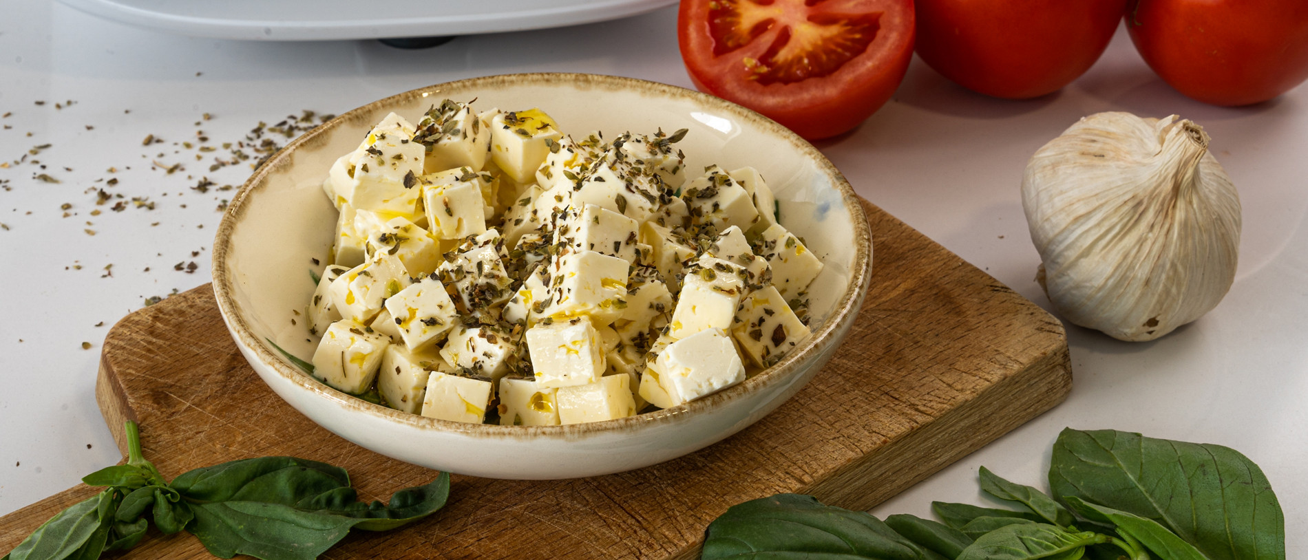 Queso vegano en aceite de hierbas.