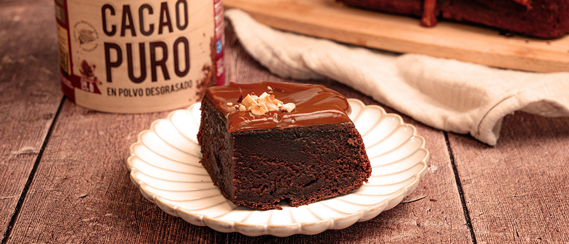 Bizcocho de chocolate, jugoso y esponjoso, con un sabor intenso a cacao y una miga suave que se mantiene tierna varios días. Thermomix® me ayuda a conseguir una mezcla homogénea y una textura perfecta en mis postres y resulta fácil animarte con la repostería. Lo preparo con Cacao Puro en Polvo Desgrasado Valor, perfecto para repostería.