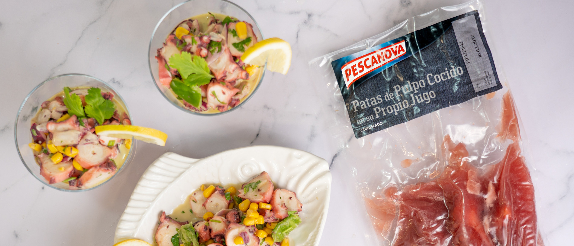 Los ceviches son de los platos más apetecibles ahora que empieza el calor y este con pulpo cocido Pescanova no puede ser más rápido y fácil. Simplemente, descongélalo y ya está listo para usar.