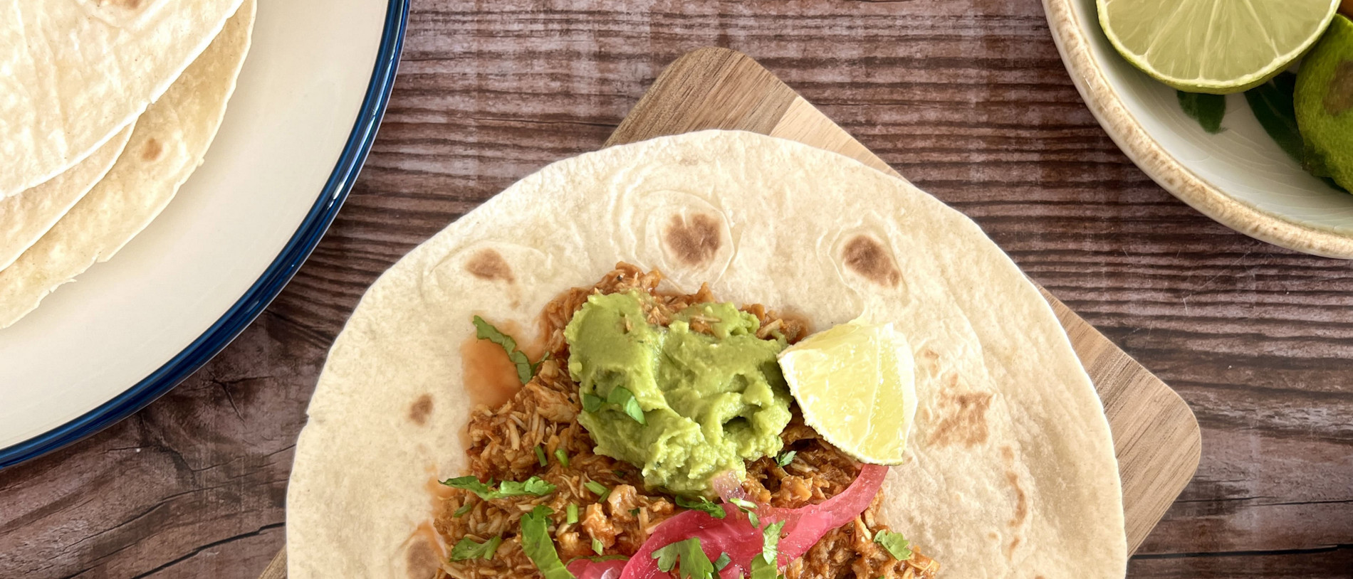 En Thermomix® haremos nuestra versión para asemejarnos al sabor tradicional y vamos a preparar el marinado para la carne, que dejaremos al menos 3 horas para que la carne de cerdo se llene de sabor y luego cocinaremos en el vaso. Una vez cocinado, desmenuzaremos la carne y serviremos con tortillas de maíz, cebolla roja encurtida y un poquito de cilantro.