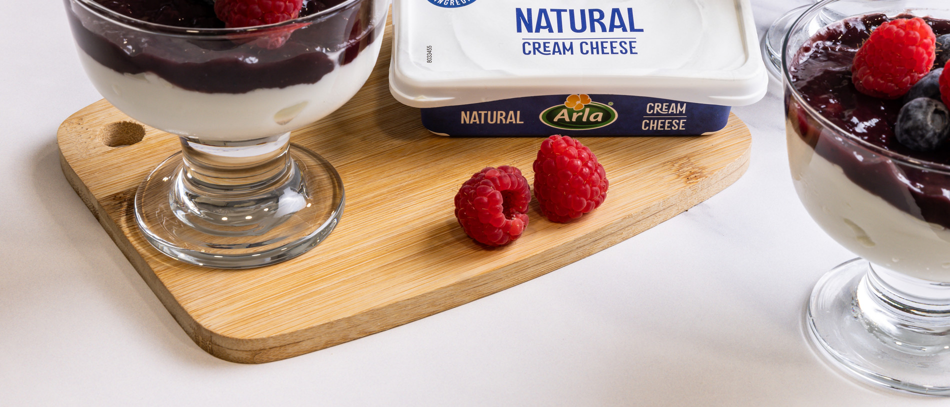 Si te gusta la combinación queso con frutos rojos, éste es tu postre. Una crema de queso suave y muy rica con el Queso de Untar Natural Arla y un coulis de frutos rojos especiado estupendo. Este queso de untar es perfecto para tus recetas. No contiene aditivos artificiales ni conservantes, solo leche desnatada pasteurizada, nata, sal y cultivos de ácido láctico. Y está buenísimo.