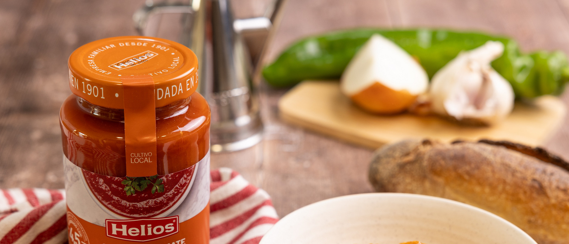 Para esta receta, usaremos la Salsa De Tomate Estilo Casero helios, con aceite de oliva e ideal para todo tipo de recetas. Está buenísima.