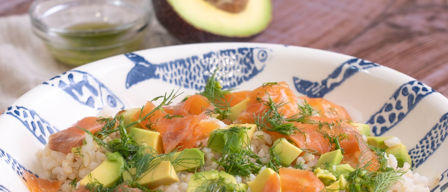 Arroz, aguacate, salmón y una salsa deliciosa. La combinación es estupenda y además puedes dejarla hecha con antelación. Perfecta para no complicarte.
