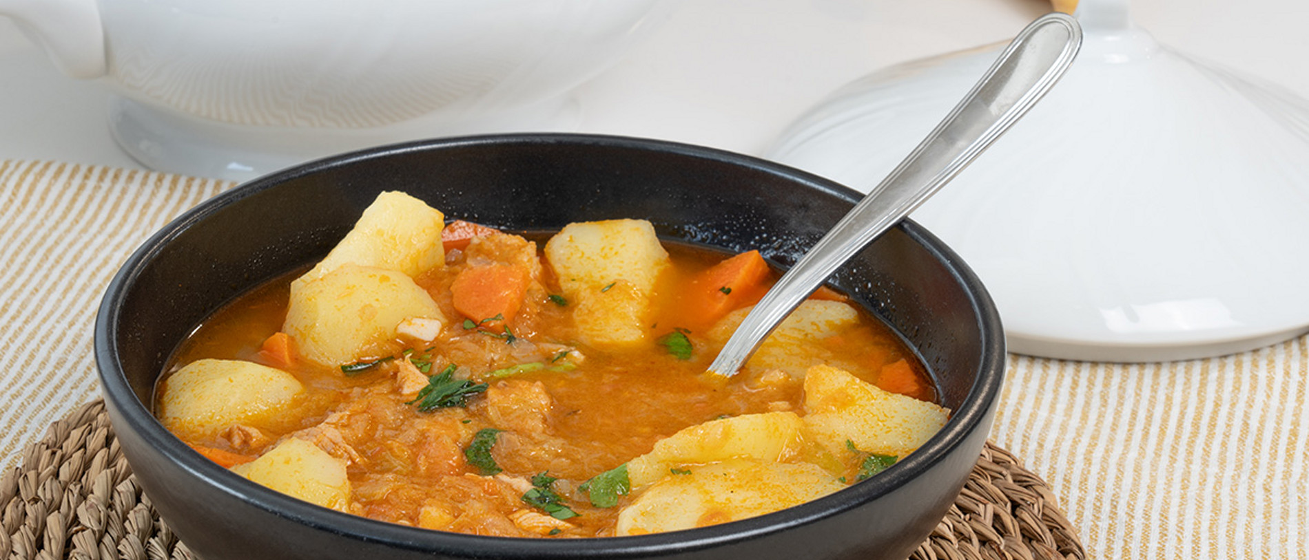 Me gusta porque tiene pocos pasos y se va haciendo mientras yo puedo hacer otras cosas, es lo que me gusta de Thermomix®. En menos de una hora tengo un guisito caliente, que mis hijos devoran y nos resuelve la comida. Patatas, verdura, carne. Un plato completo delicioso y reconfortante.