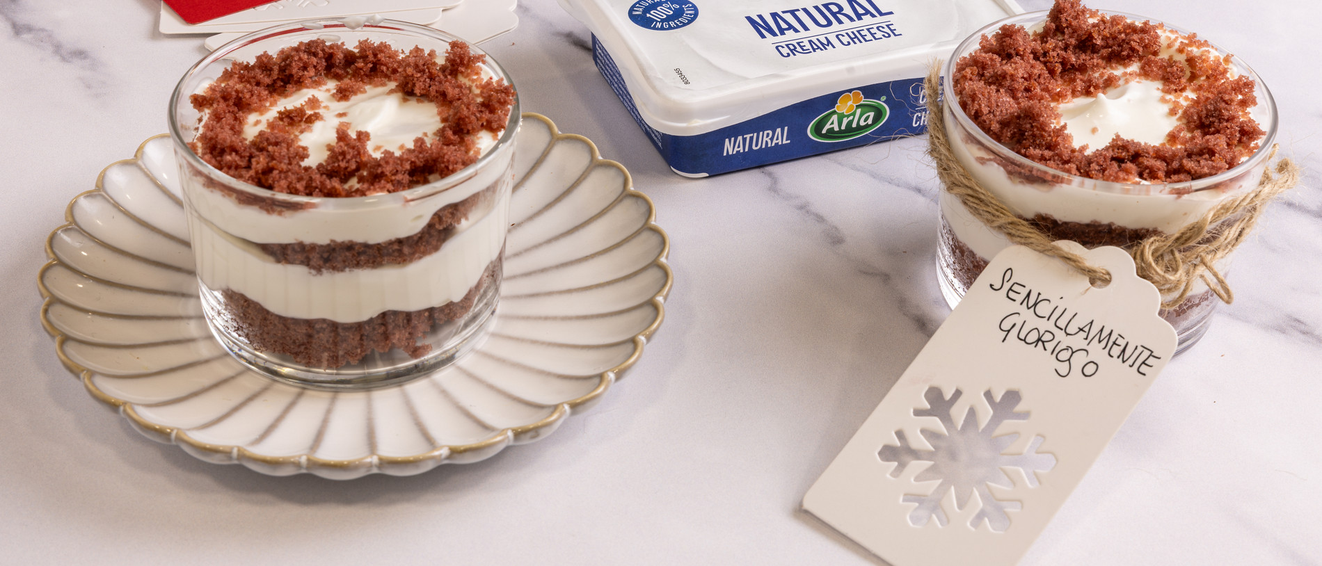 La tarta red velvet es famosa por el color rojo del bizcocho que se hacía originalmente con remolacha. Es jugosa y esta versión en vasito me encanta. Con el Queso de Untar Natural Arla queda genial, tiene un sabor único, suave y fresco al paladar. Y con unos ingredientes estupendos. Está delicioso.