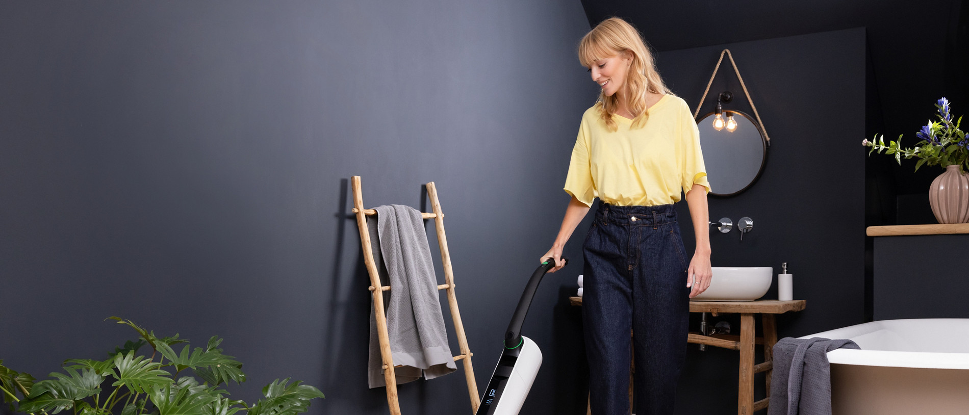 L’aspirateur laveur sans fil Kobold VK7 n’est pas seulement conçu pour le parquet de votre salon. Il sait aussi intervenir sur les autres revêtements partout dans la maison. Par exemple, il est très efficace pour nettoyer les sols d’une salle de bain comme toutes les autres pièces équipées de carrelage, de lino, de béton ciré…