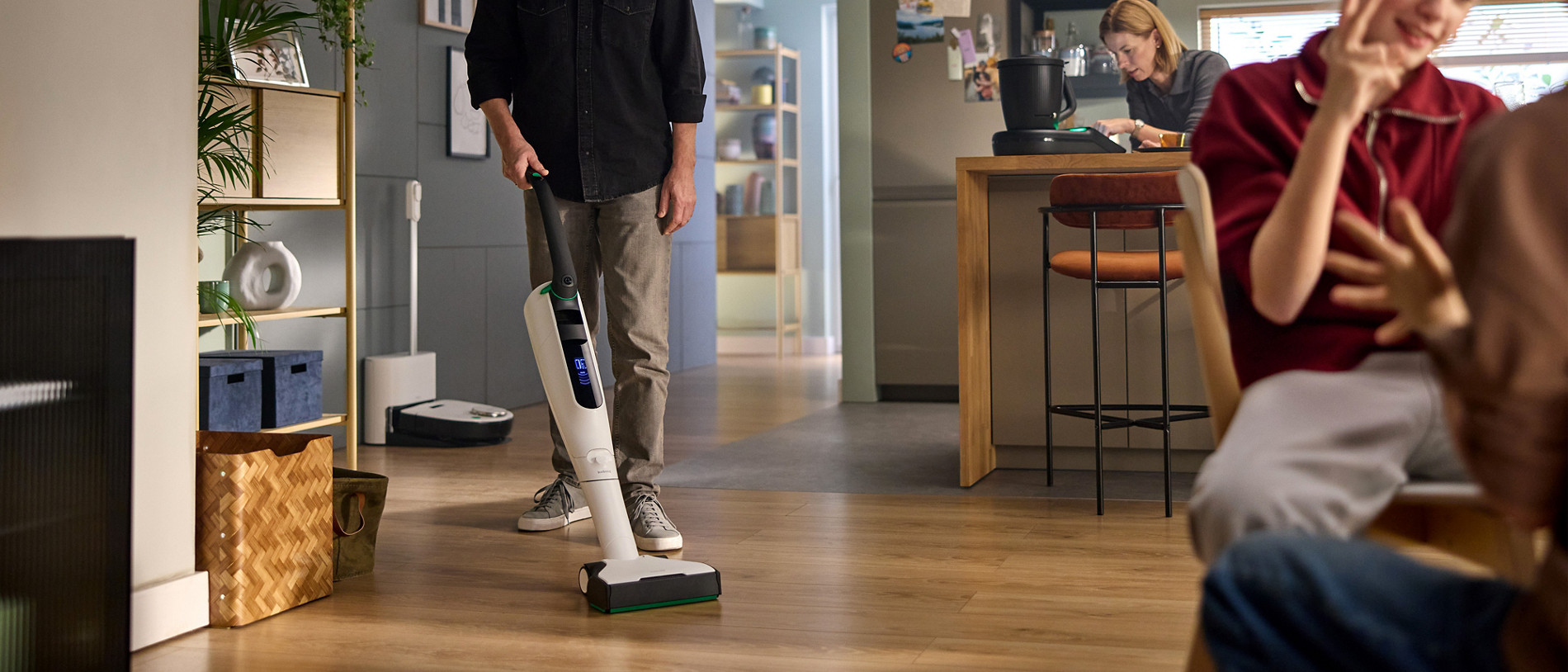 Carrelage, tapis, parquet, lino, béton ciré, pierre… Équipé de la brosse automatique EB7, l’aspirateur sans fil Kobold, aspire poussière et saleté en profondeur quel que soit le type de sol. Vous souhaitez également laver vos surfaces et nettoyer vos textiles efficacement et sans vapeur ? C’est possible !