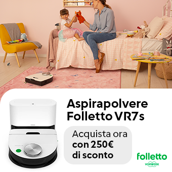 Acquista ora il Robot Aspirapolvere Folletto VR7s con Base di svuotamento ad un prezzo speciale. Fino a esaurimento scorte!