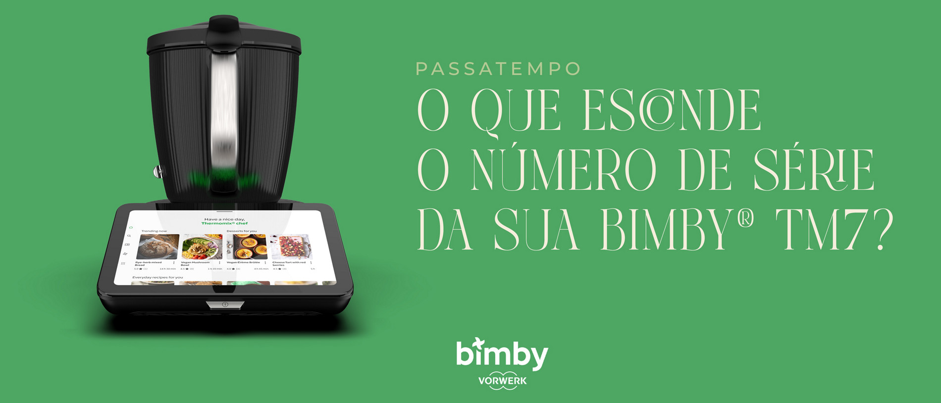 Queremos ver a sua criatividade em ação — mostre-nos o que esconde o número de série da sua Bimby® TM7 e habilite-se a ganhar uma das 5 Bimby® TM7 que temos para oferecer.