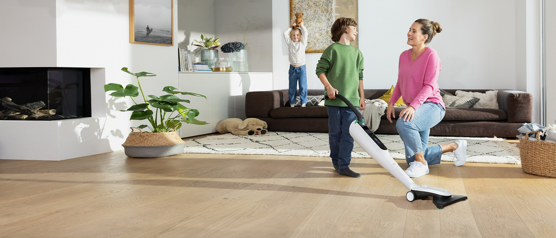 Graças ao seu design extremamente fino, é fácil alcançar as zonas difíceis debaixo dos móveis. Também é ideal para cantos, rodapés e cantos de móveis.